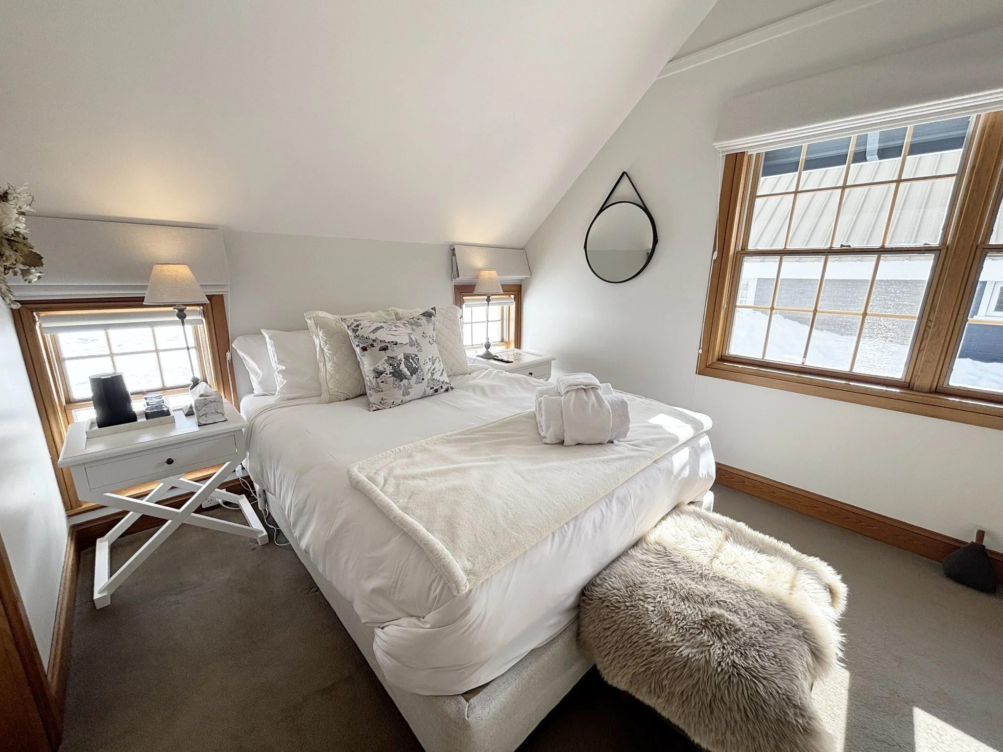 With views of the snowy deck and slopes, our Carruthers room is our largest double room, perfect for two guests.