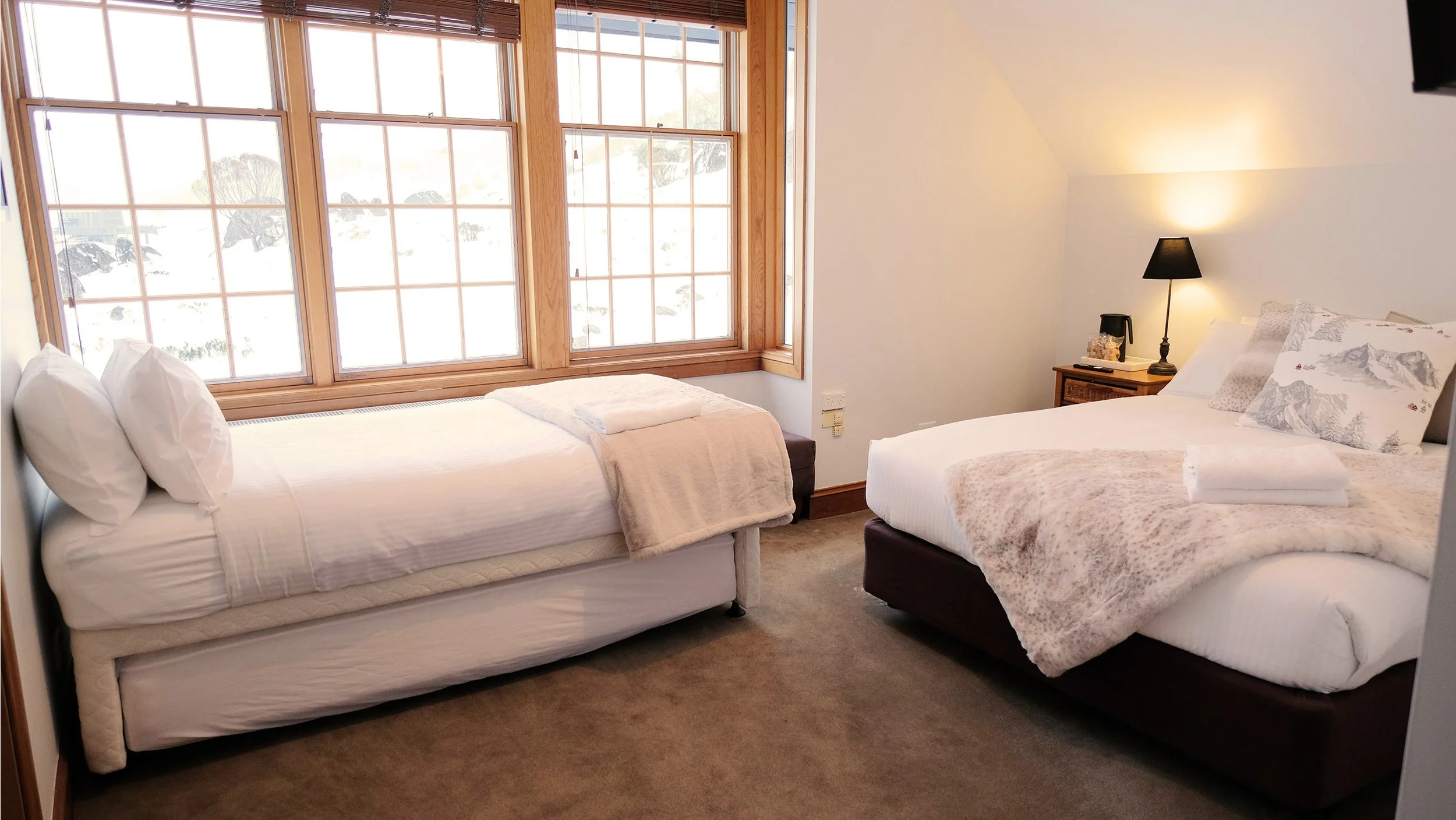 The Townsend room is one of our most spacious, offering beautiful views of Perisher Valley and a bath-over-shower ensuite. It’s ideal for bookings of three guests.