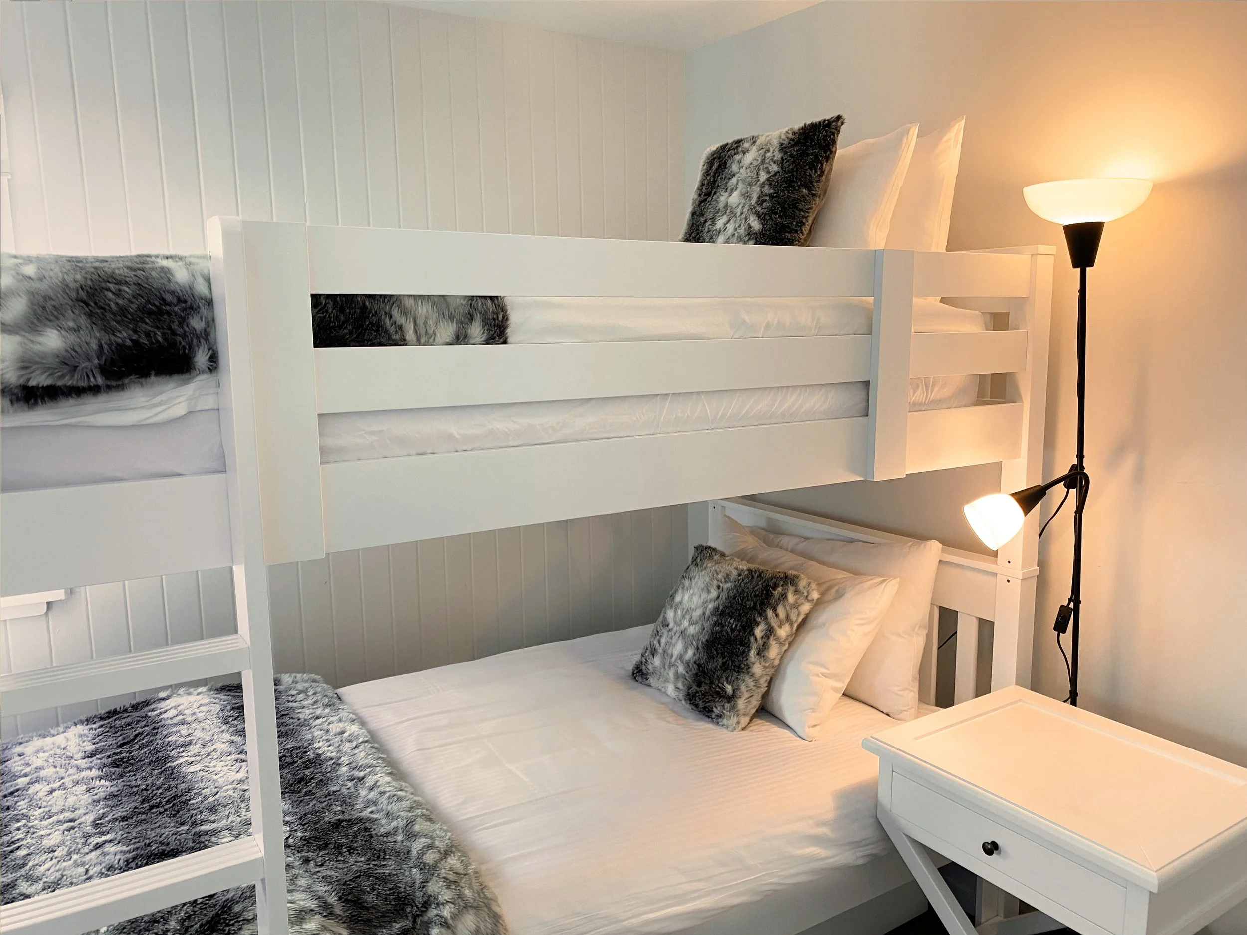 This cosy room sleeps up to 4 guests, and includes a Queen Bed, King Single Bunk Bed, and an optional Cot for an infant.